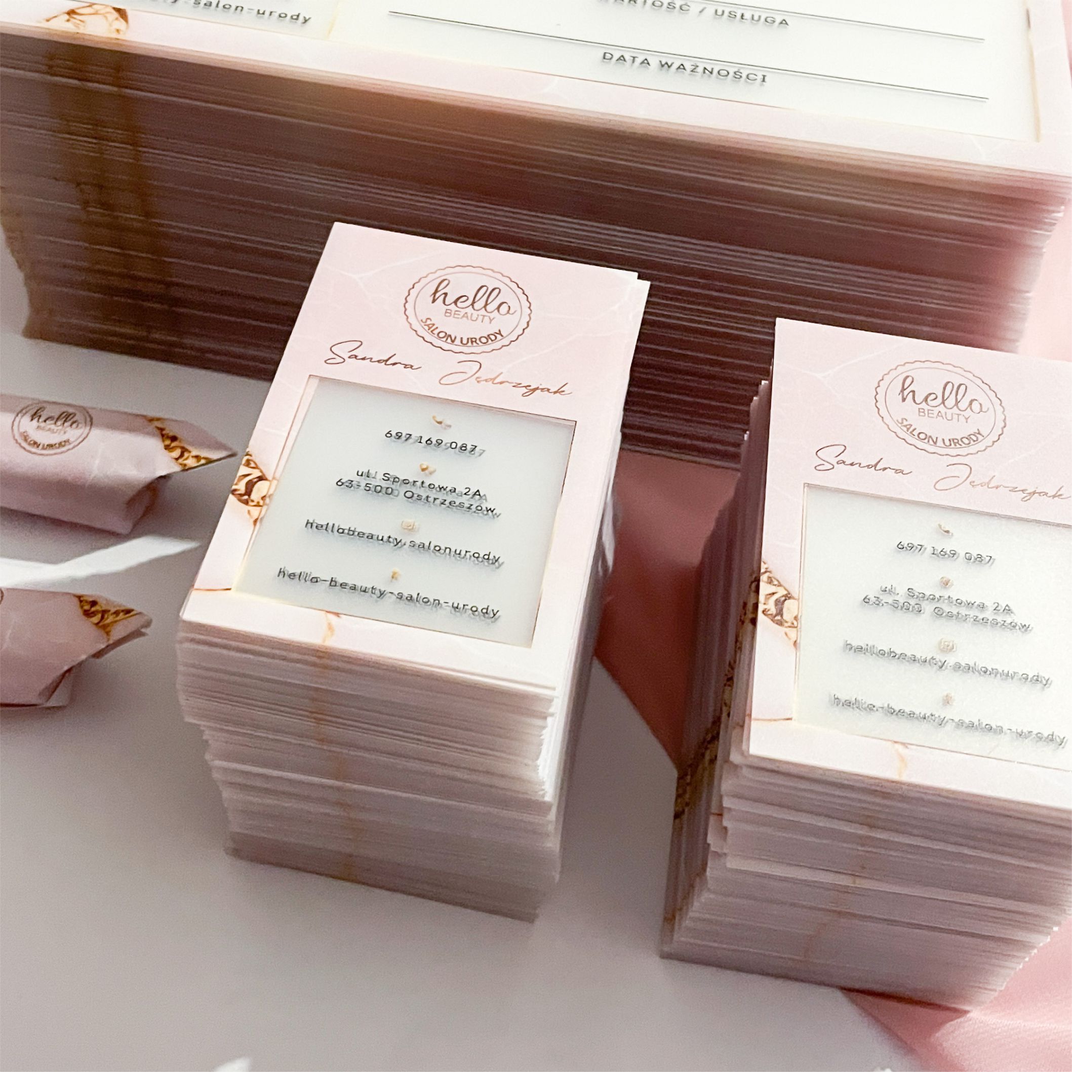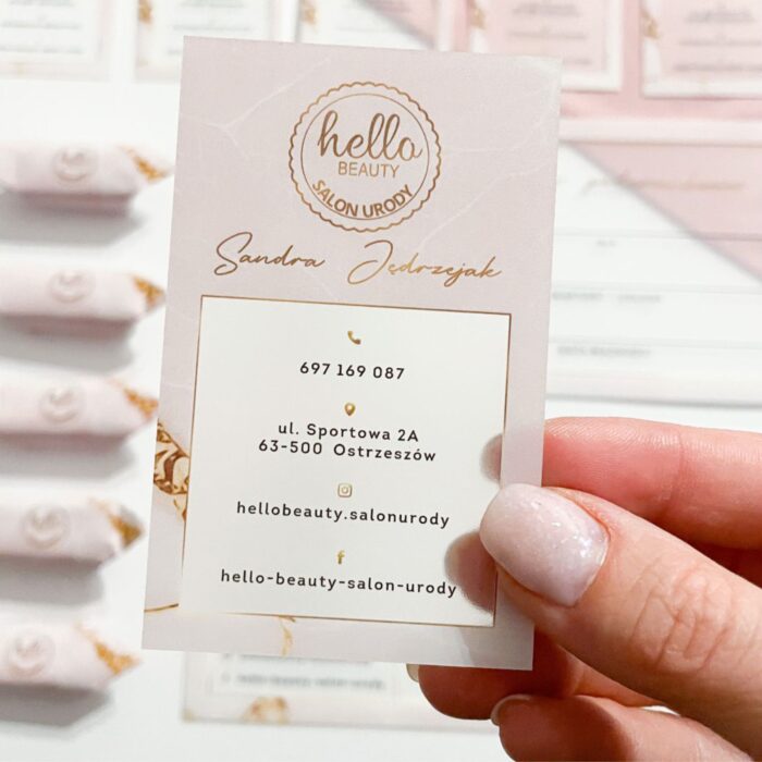 Chcesz, aby klienci łatwo mogli się z Tobą skontaktować, a polecanie Twoich usług było jeszcze prostsze? Wizytówki to doskonały sposób na to, by Twoje dane kontaktowe były zawsze pod ręką. Dodaj swoje logo, dane i kod QR prowadzący do Twojego profilu na Instagramie lub konta na Booksy – spraw, by znalezienie Cię było szybkie i wygodne! Wizytówki świetnie sprawdzają się również w poleceniach „pocztą pantoflową”. Klientka chce polecić Twoje usługi znajomej? Wystarczy, że poda jej Twoją wizytówkę, a Ty zyskasz nowych klientów bez wysiłku.